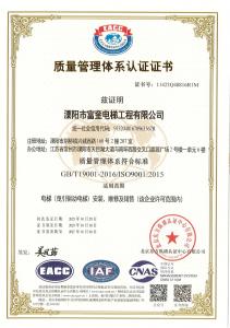 溧陽市富奎電梯工程有限公司 溧陽市富奎電梯工程有限公司是于二OO八年一月九日在原前身溧陽市電梯工程公司基礎(chǔ)上成立的,是專業(yè)從事電梯銷售安裝維修、保養(yǎng)的企業(yè)。是國家質(zhì)監(jiān)總局頒發(fā)的特種設(shè)備安裝、改造、維修A級安裝許可證單位。公司組織機構(gòu)實行總經(jīng)理負責制,公司下設(shè)管理部、銷售部、安裝維修部、質(zhì)安部、財務(wù)部,公司另外設(shè)十二個分公司:四川分公司、江蘇分公司、上海分公司、浙江分公司、湖南分公司、遼寧分公司、山東分...